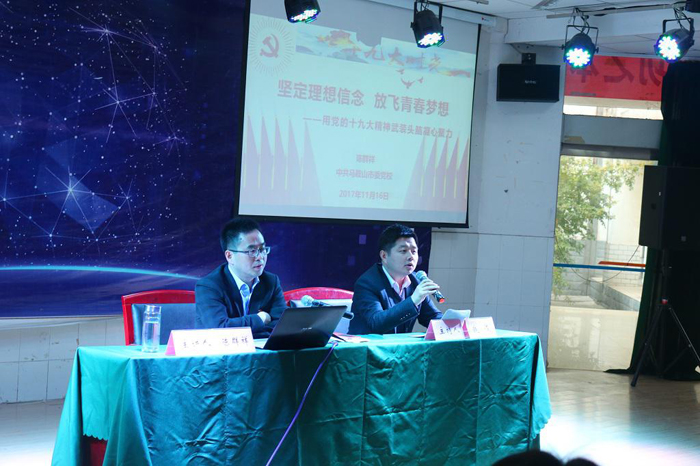 本网讯 为深入学习贯彻党的十九大精神,引导全市广大团员青年和团干部把思想统一到大会精神上来,把力量凝聚到大会确定的各项任务上来。11月16日上午9点,马鞍山市首场“放飞新时代青春梦――十九大精神走进青年”宣讲报告会在马鞍山师专大学生活动中心举行,会议邀请到了安徽省青年“百人宣讲团”成员、市委党校现代科技与管理教研室副主任,公共管理副教授陈群祥同志作宣讲报告。全市直属团组织负责人、市青联委员和青企协会员代表、学校战线代表126人以及高校学生代表等近100人参加了会议,本次宣讲会由团市委书记钱俊主持。