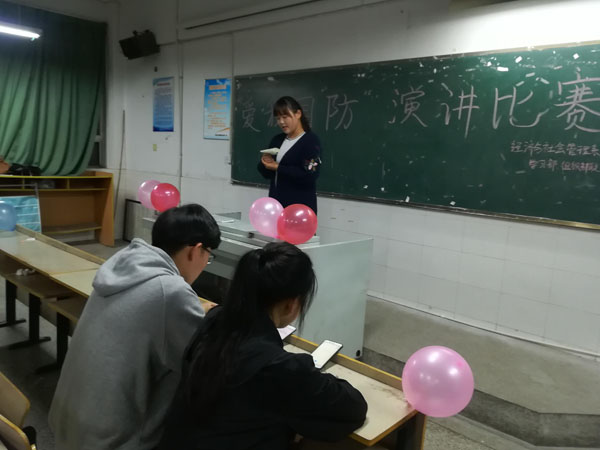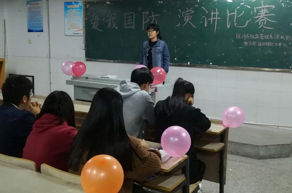 本网讯 为庆祝中国人民解放军建军90周年,提高大学生国防意识。11月16日,经济与社会管理系(思政部)团总支组织开展“爱我国防”演讲比赛。