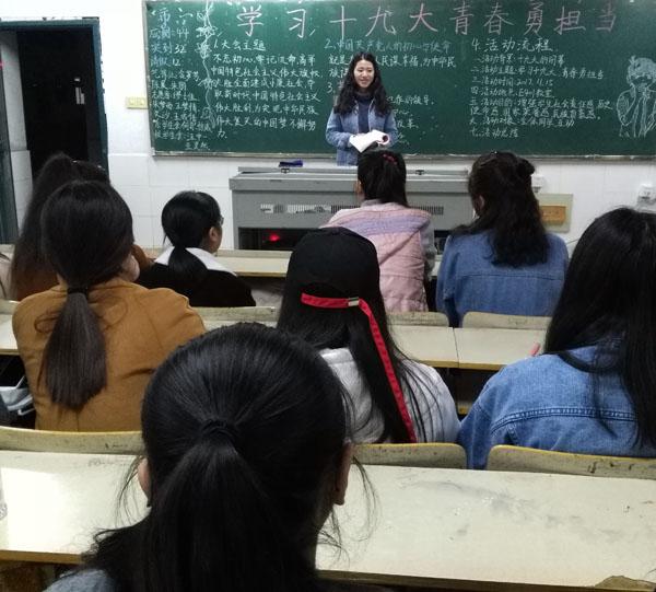 本网讯 为引导大学生进一步了解十九大精神,树立广大青年的政治意识目标。11月15日,经济与社会管理系(思政部)团总支组织该系部2017级各班级开展以“与信仰对话:学习十九大,青春勇担当”为主题的团日活动。