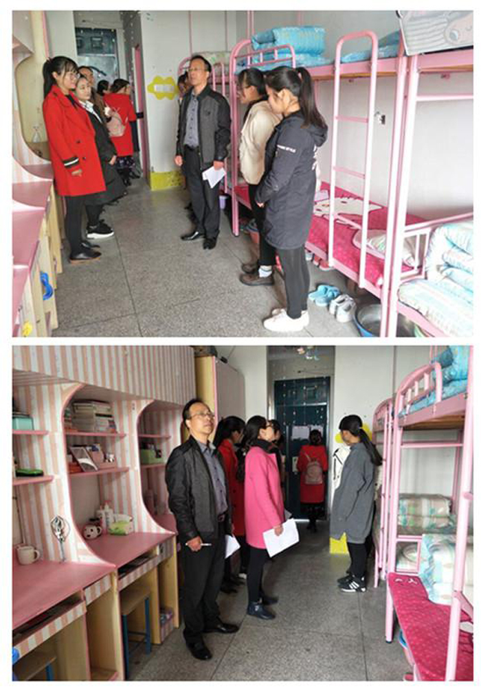 11月22日中午12:50分,由旅外系党总支副书记汪志彬、团总支书记张黎黎、学生会指导老师童忠伟及各班辅导员组成的评审团对进入二轮评选的宿舍进行打分。整洁的地面、整齐的被子、温馨的装饰、和谐的氛围在旅外系学生寝室中展现的淋漓尽致,各个寝室的风格不一,有的可爱,有的温馨,宿舍墙壁贴满了壁纸,显得整洁亮丽。同时,同学们纷纷利用身边的小物件,如照片、气球、千纸鹤等,把自己的宿舍布置的缤纷多彩。