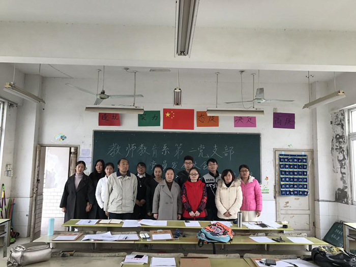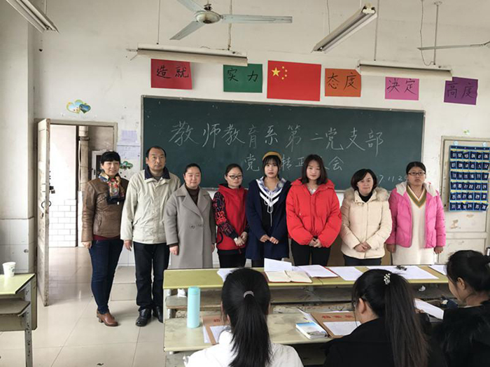 本网讯 2017年11月29日,教师教育系第二党支部在A301教室召开党员发展和转正大会,第二党支部书记王雅婷、党支部全体党员老师以及入党积极分子参加了会议。会议由第二党支部书记王雅婷老师主持。