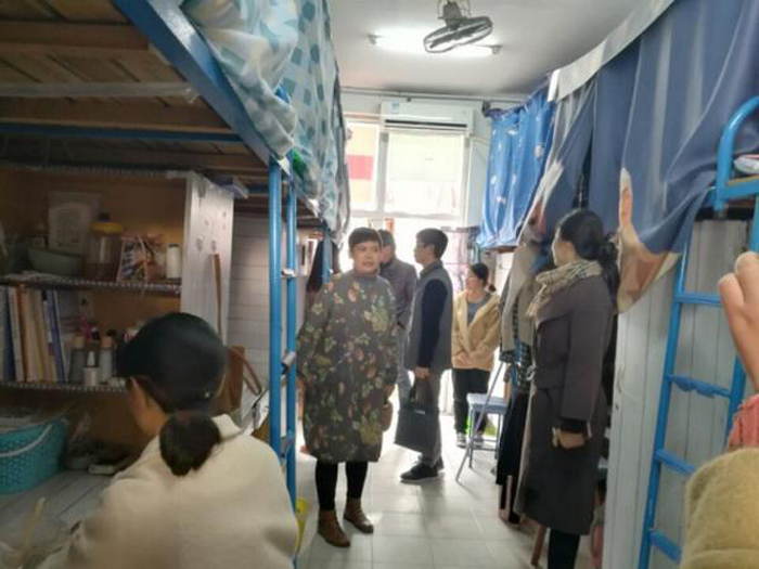 本网讯 为深入贯彻党的十九大精神,引导党员教师树立表率意识,发挥先锋模范作用,真正了解大学生生活,切实关心解决学生学习生活困难,2017年11月24日,艺术设计系第一党支部在系主任、党总支委员马幼梅及支部书记马宗禹的带领下,开展了“进宿舍、树标杆”主题党日活动。