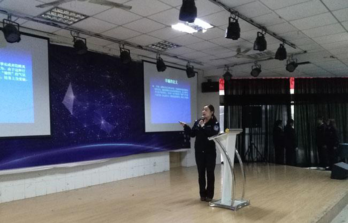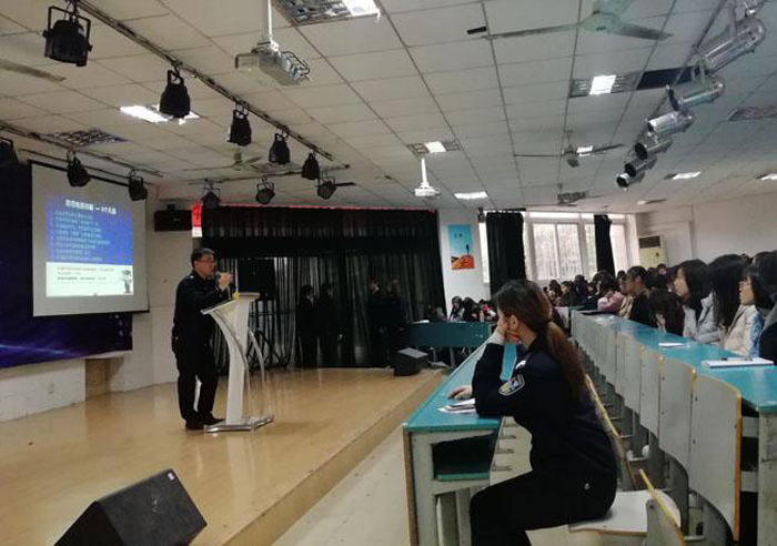 本网讯 为广泛宣传预防网络诈骗的方法,提高大学生识骗防骗能力,12月3号,经济与社会管理系(思政部)团总支于大阶梯教室(一)开展“大学生防诈骗”主题讲座,此次讲座由该系部特邀安民派出所警官于利军、蒋丽芹、蒋云进行主讲。该系部团总支书记欧阳文清、辅导员但德阳、程晟涛前来观摩,该系部2017级全体学生参与听讲。
