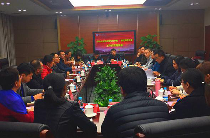 11月29日,考察团来到重庆师范大学,该校党委副书记龚燕对李秀华一行的到来表示热烈欢迎。党委学生工作部部长张志明陪同李秀华一行参观了重庆师范大学的校史馆及校园建设情况。随后,李秀华亲切地慰问了重庆师范大学“青马工程”学员及老师同台演绎的《信仰的力量》的演出人员。接着,双方进行了座谈交流。座谈会上,龚燕首先就学校的发展史及基本情况,学校立足重庆、面向西部、服务全国,突出教师教育特色,构建形成了师范教育和非师范教育“两轮驱动”,基础教育、职业教育和汉语国际教育“三驾马车”等情况做了介绍。双方就学校各部门的二级管理部门的设立及运行情况,科学规范校系两级管理行为进行了深入交流,并对学生党员队伍建设及辅导员队伍建设等相关工作进行了探讨。最后,相关职能部门进行了对口交流,学习了重庆师范大学宝贵的工作经验。