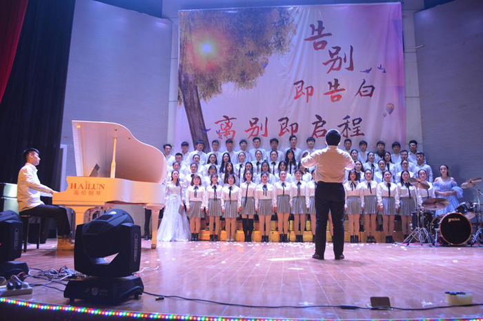 晚6时30 分,演出在悠扬典雅的民乐团合奏《桃花醉》中拉开帷幕。活动伊始,吴德琴作为教师代表致辞,她表示:希望将来的他们,无论顺境、逆境,收获时学会低头谦虚,惆怅时记得抬头仰望天空,要有坚持下去、一路行前的勇气。