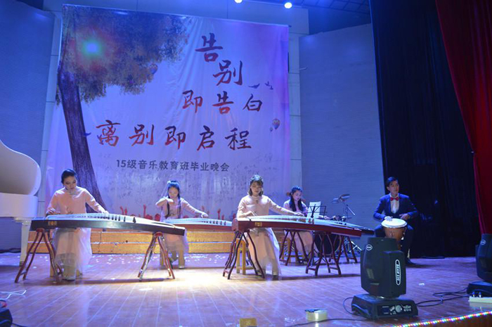 12月18日,教师教育系(基础部)2015级音乐教育班毕业汇报演出在校成功举办。该系部主任秦东方、党总支副书记吴德琴、副主任王红艳、副主任陈小凤和该专业部分任课教师出席晚会现场。