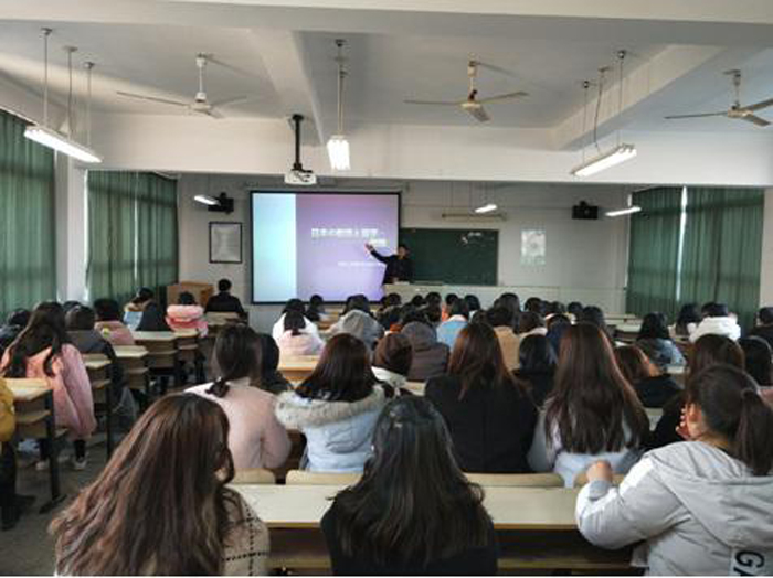 讲座开始,汪书记首先介绍了牛志奎教授的相关情况,并对他的到来表示热烈的欢迎。随后,牛志奎教授给在座的每位同学发了一张纸,让大家把自己的疑问一一写在纸上。牛教授还和大家分享了他在日本留学8年以及担任日本上越教育大学研究员、日本仙台大学教授时的经验。妙趣横生的授课方式,劳逸结合,新颖独特,极大地活跃了现场气氛。接着,牛教授用PPT的形式向大家介绍了日本的学校制度、日本大学的排名以及日语专业的就业方向,同学们认真听课,积极思考,非常珍惜这次获取新知识的宝贵机会。