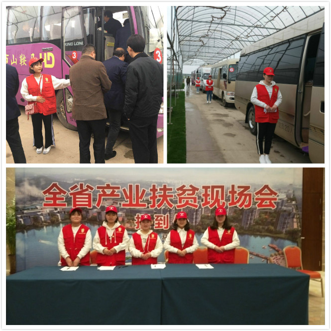 为保证现场会的顺利召开,更好地协助本次产业扶贫工作。3月17日上午,团市委对校青年志愿者进行了实地踩点、工作分配、人员安排等培训。3月18日下午两点,参加现场会的嘉宾们被分为两组,分别从不同路线考察扶贫项目的建设成果。志愿者们提早等候在各自负责的工作地点,对前来考察的嘉宾进行引导,为其分发雨伞及矿泉水,并负责上下车后的人数清点。校青年志愿者协同配合,以周到的服务、文明的举止,充分展示出了志愿者的良好精神风貌,赢得了参会嘉宾的广泛好评。