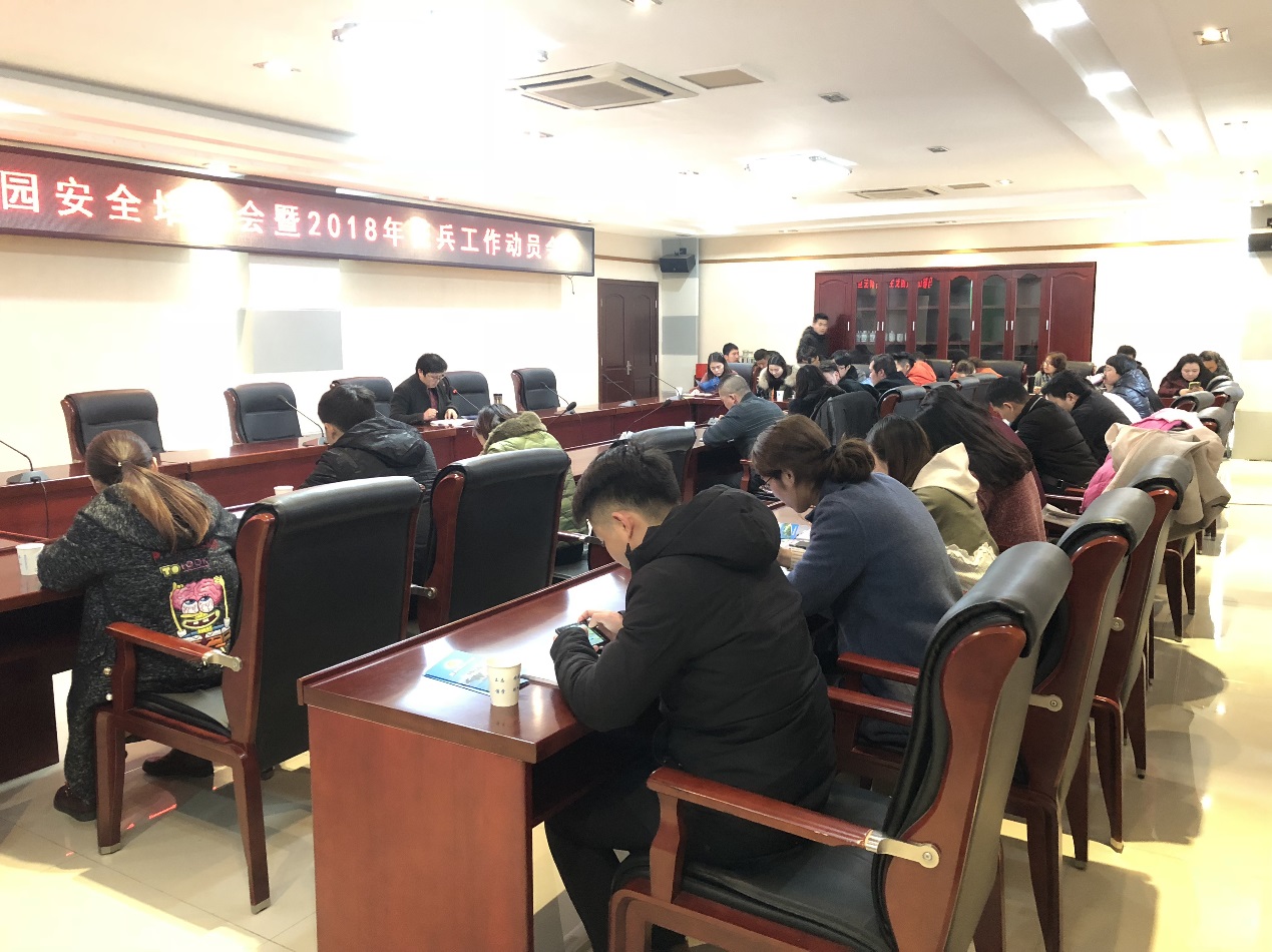 本网讯 为开展好全校2018年大学生征兵工作,鼓励大学生积极应征入伍,投身军营,献身国防。3月21日下午15时,校保卫处(武装部)在行政楼302会议室召开全校2018年征兵工作动员会,各系辅导员、安全员参与此次会议。会议由保卫处副处长郭子超主持。