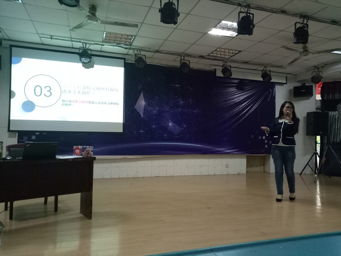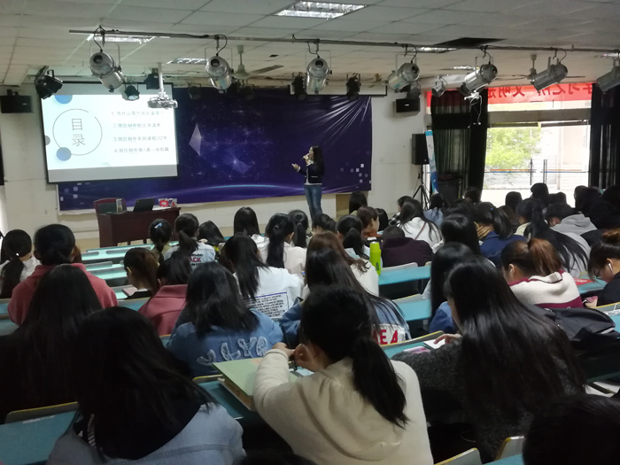 下午3时许,大阶梯教室(一)座无虚席。讲座在同学们的期待中拉开帷幕。“你开始准备写你的简历了吗?”讲座伊始,吴琼就开门见山地提出问题,同学们面面相觑……随后,她表示同学们应该在大一大二的时候就为自己写好简历的初稿,她话音刚落,便引得同学们对就业的深思。接着,吴讲师就“动机”为话题展开一系列演讲。“职业动机是决定你职业的未来,那就是你为什么要找工作?”她用一连串的设问回答同学们困惑已久的问题。在演讲过程中,她还时不时用流利的英语向大家描述和表达,赢得台下学生们的阵阵掌声。