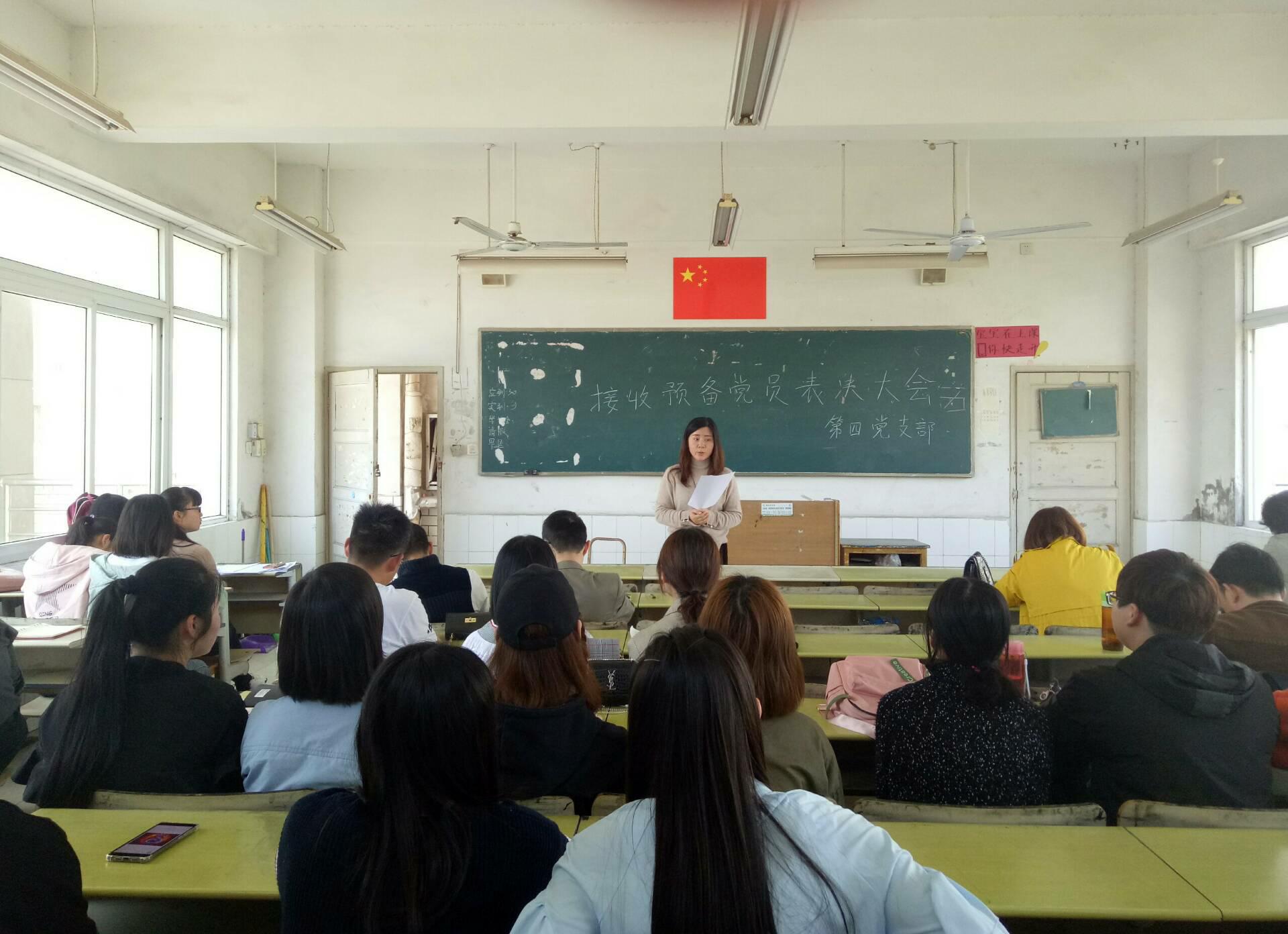 本网讯 4月10日中午,教师教育系(基础部)第四党支部在修德楼A401召开了2018年上半年党员发展和转正大会,会议由该支部书记闵玉荣主持,全体党员、预备党员和发展对象参加了会议。