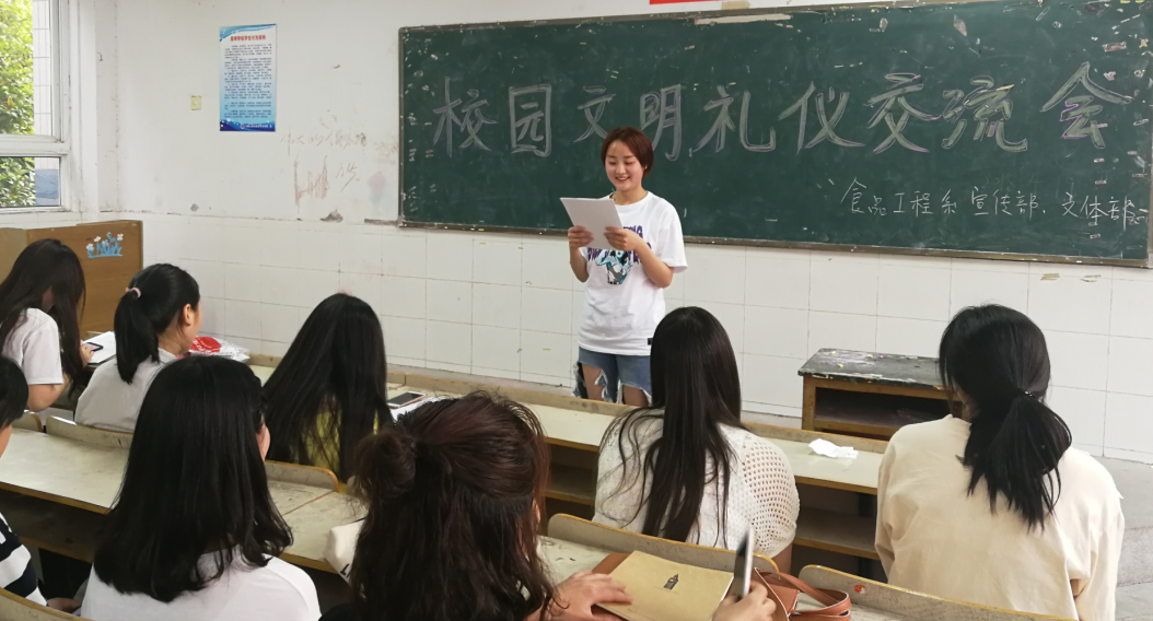 本网讯 自古以来中华民族就素有“礼仪之邦”之称,我们五千年的文化传承给予我们的不仅有文明的荣誉,也有礼仪的要求。4月20日,食品工程系学生会宣传部和文体部组织开展食品工程系“文明养成在我行”系列主题活动之三—礼仪之风我在行交流会。食品学子齐聚一堂,共同感受礼仪的魅力。