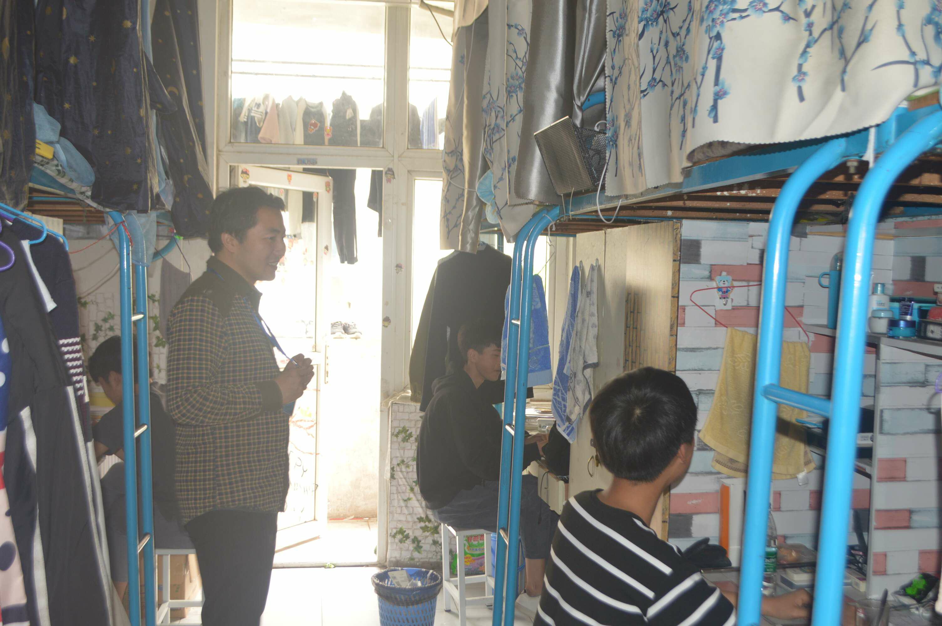 据悉,由于该系部学生宿舍较多、分布较散,活动前,在团总支的统一安排下,将学生干部分成3组,分赴不同楼栋同时检查,教师一行对男女生宿舍分别随机抽查。检查过程中老师与同学们进行了亲切交流,了解他们的生活学习、安全卫生和宿舍文化等情况,叮嘱同学们要增强自律意识,高度重视宿舍安全和卫生问题,勤通风、倒垃圾,打扫宿舍,尤其现在处于春季传染病高发期,更要注重保持寝室干净整洁。走访中,对于个别比较凌乱的宿舍,杨永刚老师还亲自动手教学生如何整理桌面,并提醒打扫卫生时要注意卫生死角问题。