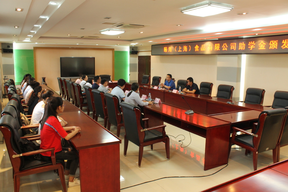 本网讯 殷殷真情助学子,浓浓爱意暖人心。6月28日上午,颐海(上海)有限公司助学金颁发仪式在学校行政楼302会议室隆重举行。马鞍山师专党委委员、副校长李秀华出席仪式并讲话。颐海(上海)有限公司人力资源总监甄新丰、马鞍山分公司人事经理赵声志,学校学生处副处长潘庆云,教师教育系副主任陈小凤、食品工程系团总支书记王海云,相关系部辅导员和受助学生共同参加了颁发仪式。颁发仪式由学生资助管理中心主任戴小兵主持。