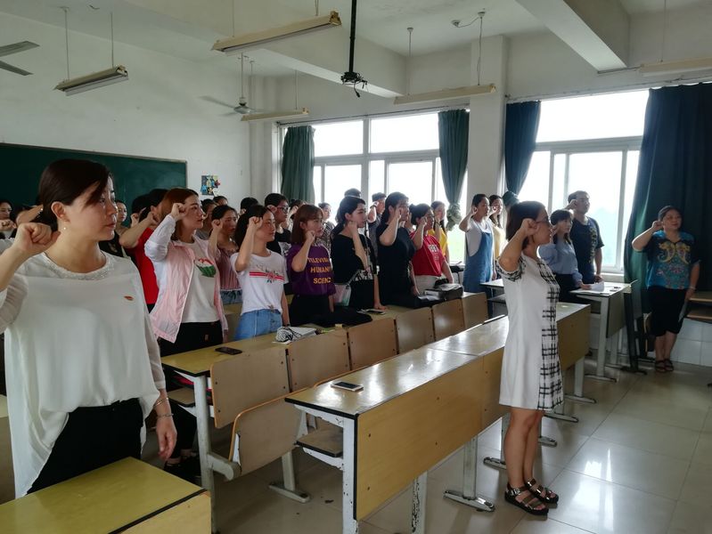 本网讯 为更好地落实党员发展工作,引导毕业生党员充分发挥先锋模范作用,站好最后一班岗。7月4日,教师教育系(基础部)于立志楼502组织开展了新发展党员入党宣誓活动。该系部党总支副书记吴德琴与各总支委员、支部书记参加了活动,会议由该系部副主任、党总支宣传委员陈小凤主持。