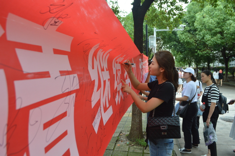 “师专,我回来了。”签字横幅上留下大名,那是我走过的痕迹。匆匆数载寒窗,“母校,谢谢您。”