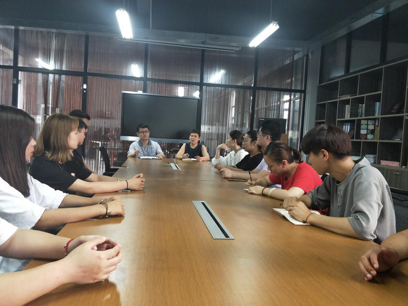 本网讯 2018年7月2日下午,艺术设计系2018届毕业生座谈会在丹青楼501举行。艺术设计系主任马幼梅与毕业生代表共聚一堂,回顾三年来的学习和生活,畅谈未来的发展规划。座谈会由艺术设计系副主任夏弘睿主持。