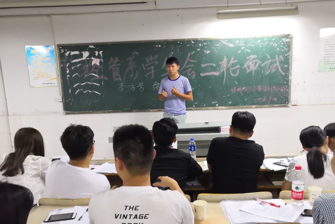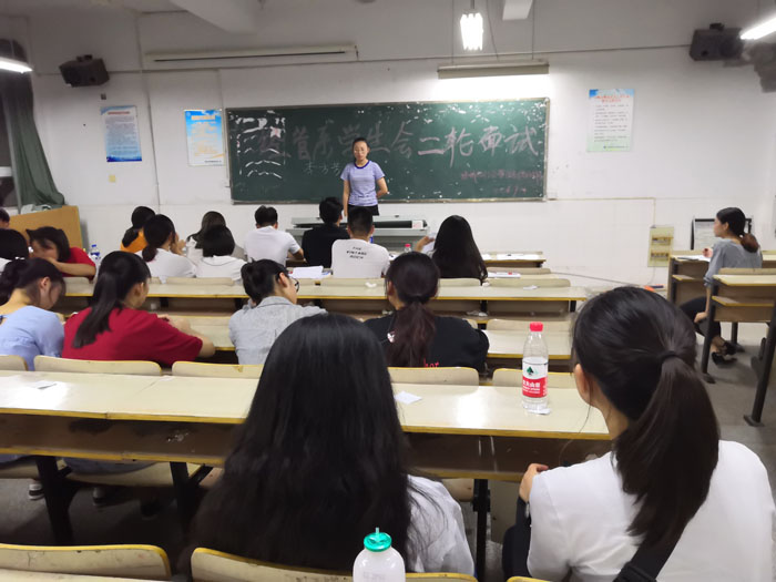 本网讯 为了进一步促进学生会工作,巩固和完善学生会的工作机制,更好的服务于同学。9月14日,经济与社会管理系(思政部)团总支学生会第二轮面试于博学楼306教室举行。
