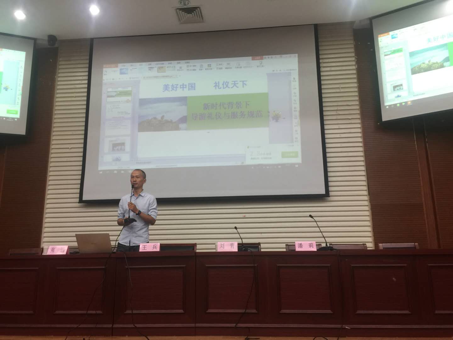 此轮培训,张运老师结合国家文化和旅游部李金早副部长的新作《当代旅游学》和蔡家成先生的《满足人民美好生活需要是新时代旅游业的根本任务》一文,与黄山学院有关老师合作开发了《新时代背景下导游服务规范和礼仪》培训课程,并于9月18日在黄山学院旅游学院进行了“首秀”。9月19日,张运赴宣城职业技术学院授课,9月20日,张运赴位于青阳县的池州市旅游学校授课,9月21日,又赶赴安庆师范大学资源环境学院授课。