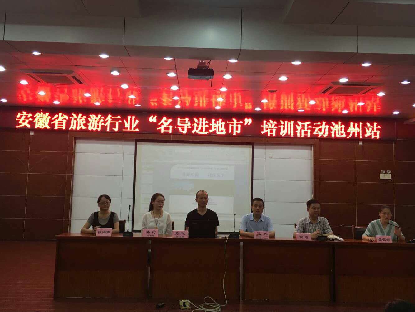 本网讯 根据安徽省旅发委《关于开展2018年安徽省旅游行业“名导进地市”培训活动的通知》,2018年9月18日—21日,旅游与外语系旅游管理教研室张运老师在省旅游培训中心的安排下,与安徽省旅游培训中心(省旅游学校)校长助理王兵、合肥名导潘莉老师一行赴黄山、宣城、池州、安庆开展导游座谈和培训交流活动。