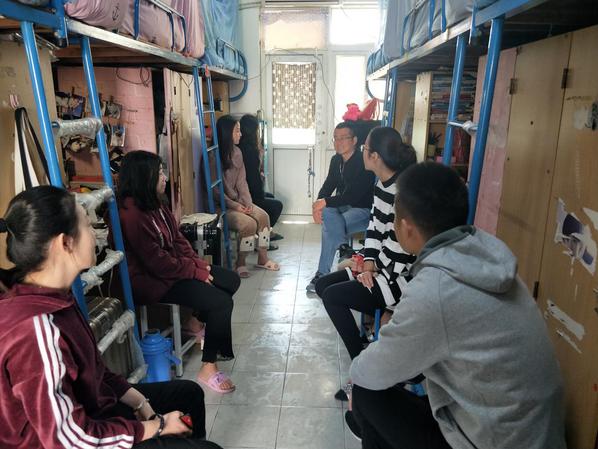 本网讯 2018年10月11日,艺术设计系党总支副书记杨俊波,辅导员王越、刘奥林、王昀一行来到该系女生宿舍,对家庭经济困难学生进行了走访慰问。