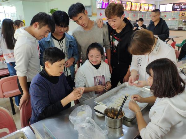 下午15时40分,老师们和食堂的工作人员早已把各项食材准备齐全。同学们准时来到食堂,脸上洋溢着灿烂的笑容,围坐在桌前与老师们一起包饺子,一起聊家常,欢声笑语不断。有些同学对包饺子这项“技术活”很生疏,马幼梅亲自示范,耐心指导,不一会儿各式花样的饺子就摆满了餐盘,让现场的师生啧啧称叹,吸引了不少学生前来观看、学习,其他老师也不甘示弱、各显身手,大家很快掌握了包饺子的技巧,每个人都忙得不亦乐乎。