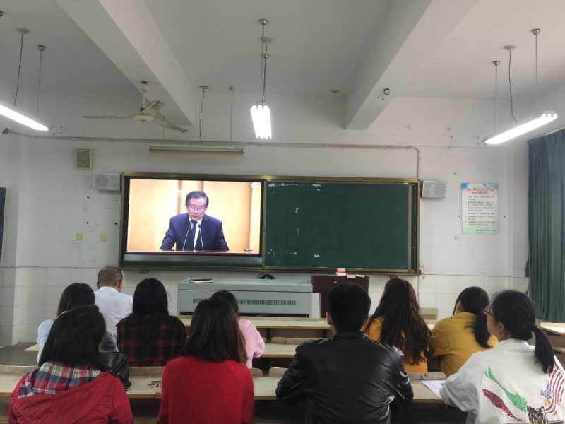 本网讯 为了深入学习贯彻党的十九大精神,进一步引导广大青年学子和科技工作者遵守学术规范、坚守学术诚信、完善学术人格、维护学术尊严,摒弃学术不端行为,10月15日下午,“以习近平新时代中国特色社会主义思想为引领,大力弘扬爱国主义奋斗精神”为主题的2018年全国科学道德和学风建设宣讲教育报告会在北京人民大会堂召开。食品工程系党总支积极组织全体无课教师、学生党员、学生干部及入党积极分子于E502集中收看网络电视直播。