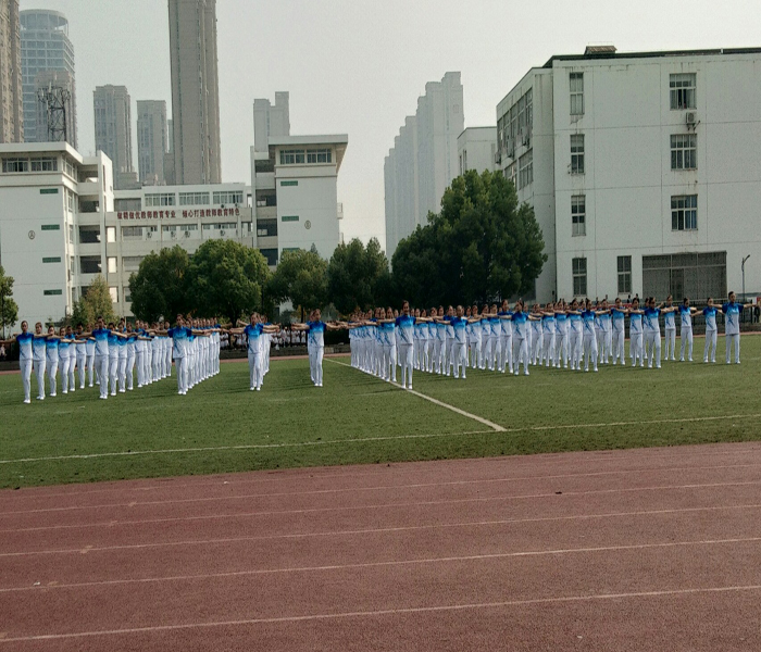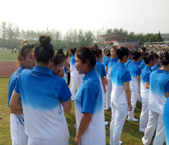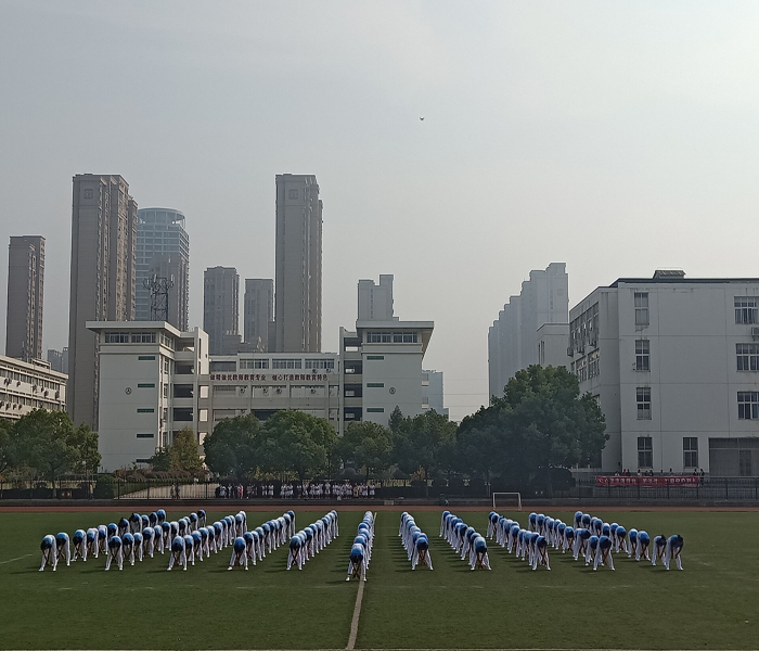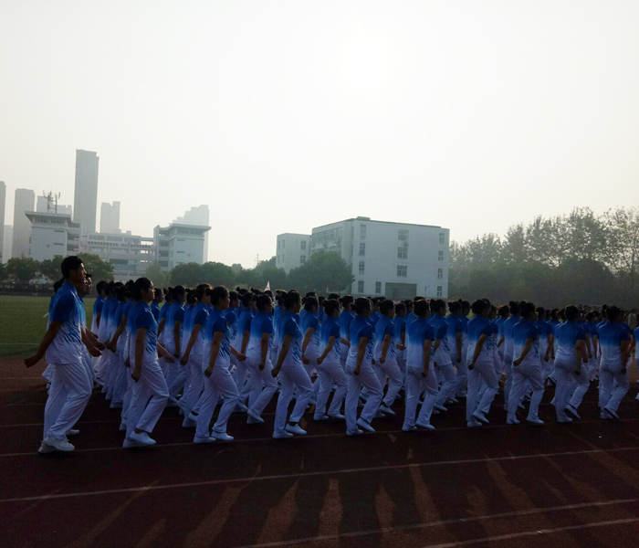 迎着初升的太阳,这群斗志昂扬的同学们身着蓝白色赛服,整齐划一的方阵在运动场上形成一道亮丽的风景线。