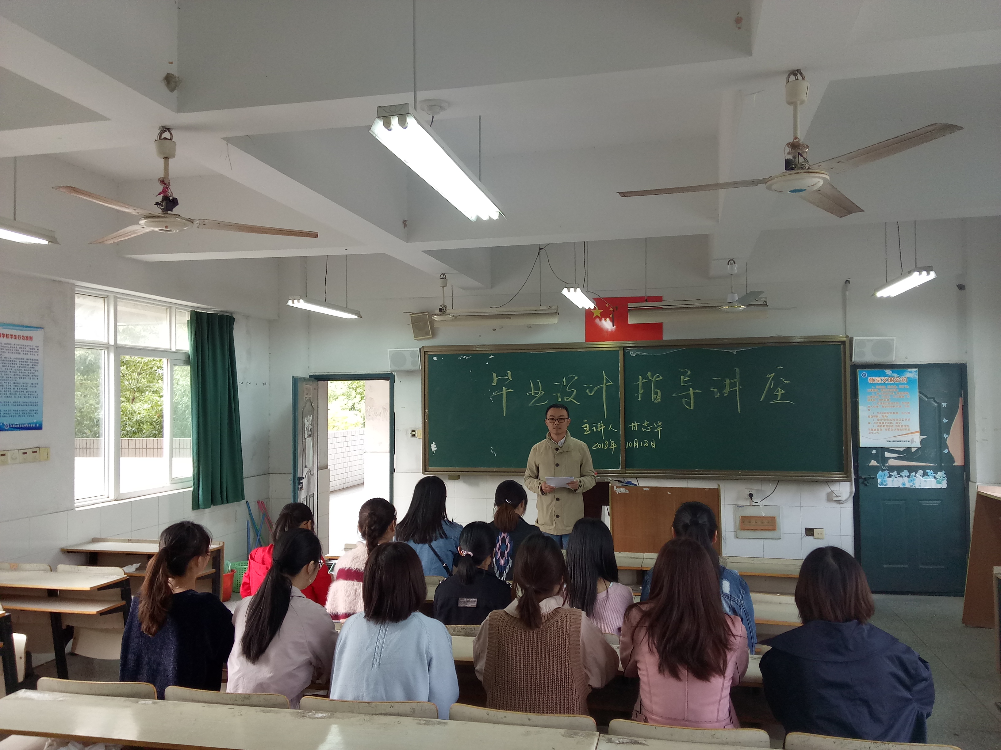 本网讯 10月18日,甘志华教授在E201为2019届市场营销专业毕业生举办了一场毕业设计指导讲座。