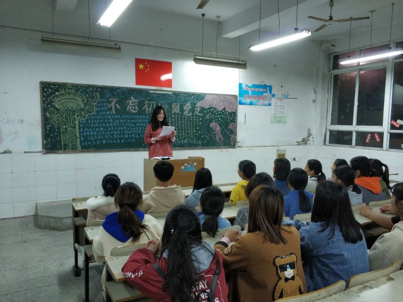 在8日晚上七点各班团支部全体成员准时到达活动地点,早在团日活动开始之前,班委成员就布置好了黑板报和活动场地,为此次活动作了充分的准备,待到大家集合完毕,由团支书宣布此次团日活动正式开始并宣读活动内容。首先,由团支书就这次活动主题发表自己的演讲:“党的十八大以来,以习近平同志为核心的党中央高度重视青少年和共青团工作,同时围绕青少年和共青团工作发表了一系列论述,深刻阐述了新形势下青少年和共青团工作的重大理论和实践问题,指明了当代青年的历史使命和成长道路。”与此同时,团支书向大家展示了自己搜集到的材料与新闻,借助制作精美的PPT材料,成功引发了同学们的思考与讨论,将整场活动的气氛推向了高潮。