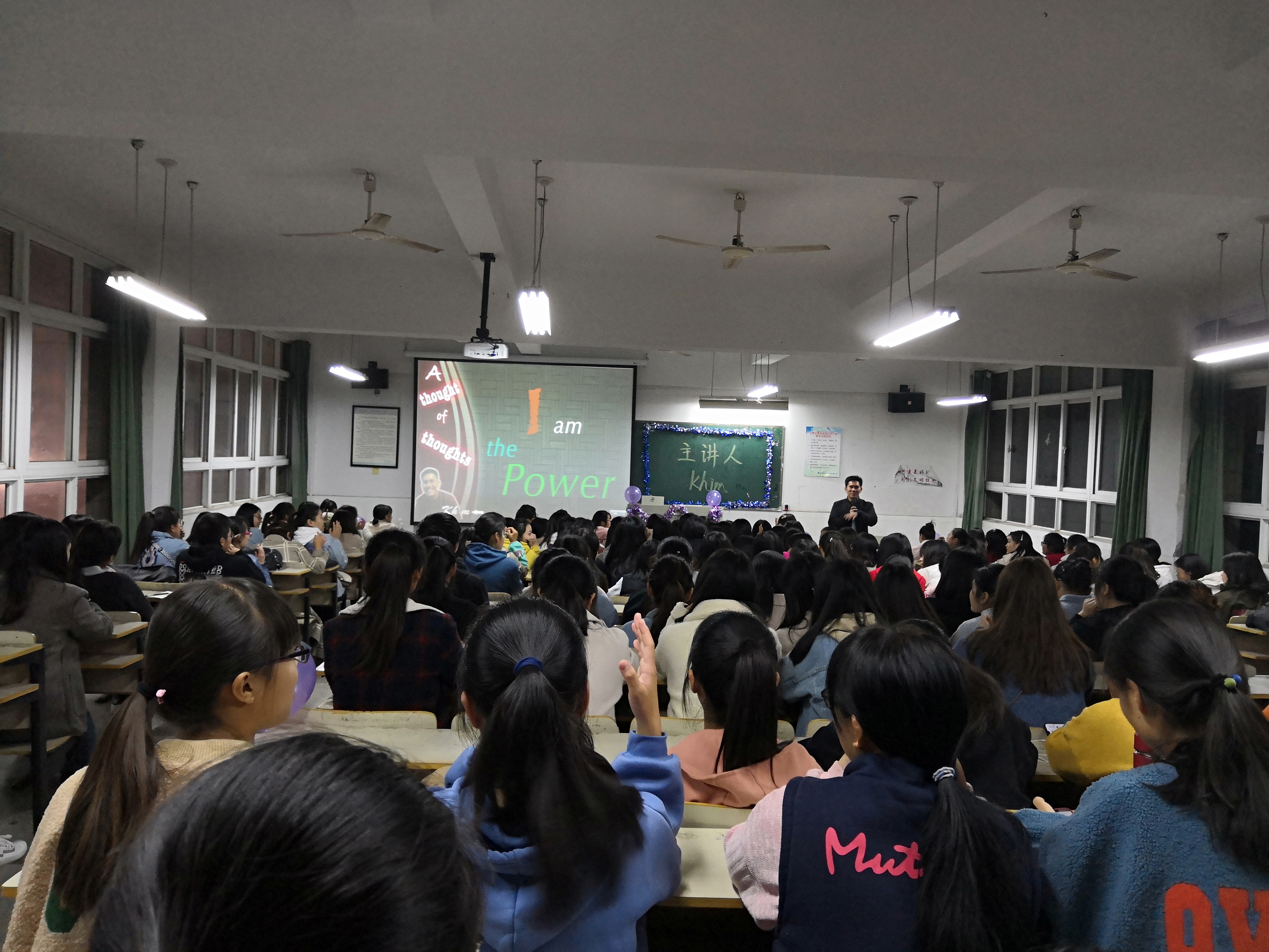 活动分为两个部分。第一部分,外教khim围绕“I am the power”讲述自己对英语学习的观点及同学们应该如何提高对英语学习的兴趣,并以PPT的形式向同学们直观地展现英语的魅力,在场的同学们认真听讲,积极回答他的问题,现场气氛十分融洽。第二部分为提问环节,18级应用英语2班的赵梦宇同学首先抛出“如何更好地提高英语听力水平及学习英语时应该注意哪些”的提问,外教细致地回答了她的问题,并结合自身学习汉语的经历提出了自己对学习语言的建议,他希望同学们今后在学习的同时能将英语融入生活中,让自己能够更轻松地学习英语。随后,外教一一解答了其他同学的提问。参加此次讲座的同学们反响热烈,纷纷表示受益匪浅。