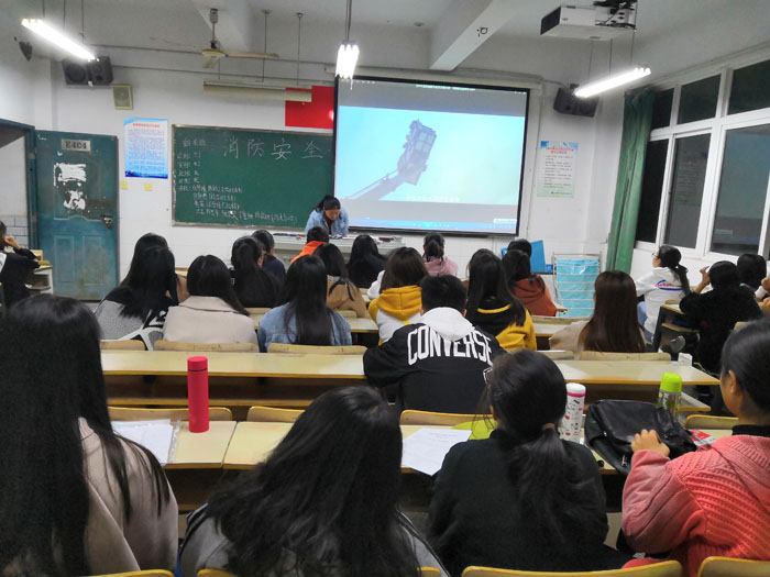 据悉,此次观看影片为《消防安全警示片》。该影片从高层建筑火灾、公共娱乐场所火灾、商场市场火灾、医院火灾、老年公寓火灾、电动自行车火灾、安全意识淡薄人亡火灾等七大火灾方向,剖析世界各地重特大火灾事故,深刻分析了忽视消防安全、消防安全责任不落实,会给国家、人民生命财产及自身造成严重损失的惨痛教训。从而警示学生火灾报警、逃生自救、扑救初期火灾等消防常识的重要性,进一步加强了火灾警示教育。随着投影仪上一帧帧画面的切换,一幅幅失火带来的惨痛画面,使得同学久久不能平静。其中,在影片中通过记录2015年5月,迪拜某高层大厦因明火处理不当而不慎发生火灾,由于该楼层消防道具完善加上物业公司经常举行消防演练活动,使得该栋大厦及时灭火且无人员伤亡。而2010年11月,上海静安区某教职工大厦因外部装修几次出现了安全隐患威胁,但该地灭火器配备少,且消防管道设施老化、居住人员消防安全急救意识薄弱,导致大在不慎失火后,火苗迅速蹿长,烧毁整栋大楼,造成惨重死伤。两段影片的反差深刻提醒同学们消防安全急救意识的重要性。