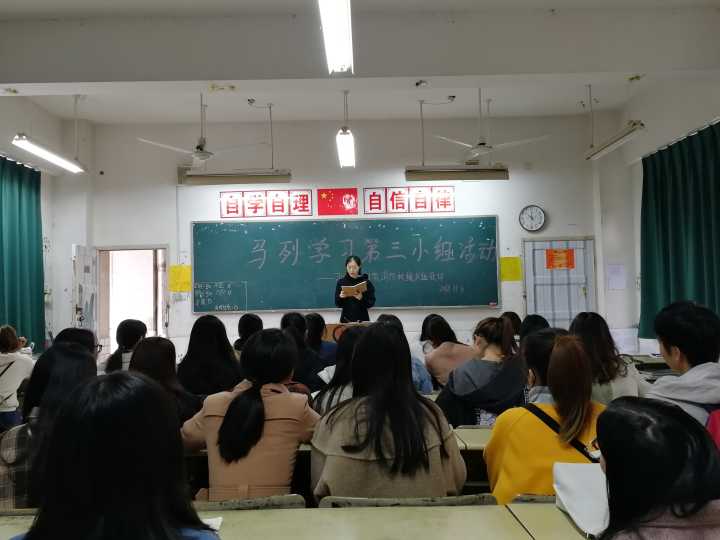 本网讯 11月14日,教师教育系(基础部)马列学习小组第三组在A101开展第三次组内学习活动,本次学习的主题是习近平总书记向国家综合性消防救援队伍授旗并致训词的相关内容。活动由该组宣传委员李想楠主持。