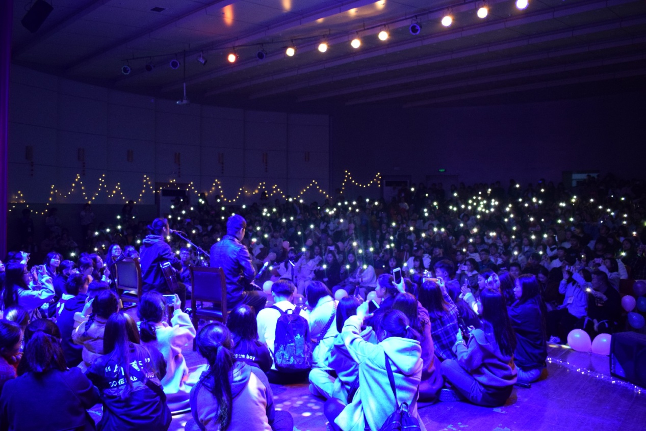 整场音乐会中,故事和歌曲交织穿插,一把吉他,两个人,一首首民谣演奏出他们四处漂泊却仍坚持音乐的梦想故事。歌手小天使在唱完《愿》后,一句“愿你如海般辽阔,愿你如梦般洒脱,愿你如风般自在,愿我如你这般”,引起场下观众强烈的共鸣;唱到《姐姐,今夜我在德令哈》时,观众们随着歌声挥舞手机闪光灯,现场宛如一片雪海;小天使还邀请无座的同学席地围坐,吟唱着《阿刁》,娓娓道来的故事里,有大理的风花雪月,有西藏的纯净广阔。《晴空远》中,歌手田自鸿沧桑低沉的歌声,搭配清脆的吉他旋律,惊艳了每一位观众;《关于理想》唱出了一个执着的男孩对于梦想的追求;最后,歌手们与在场的观众们一起合唱《陪我到可可西里去看海》。音乐会在歌声、掌声中缓缓落下帷幕。