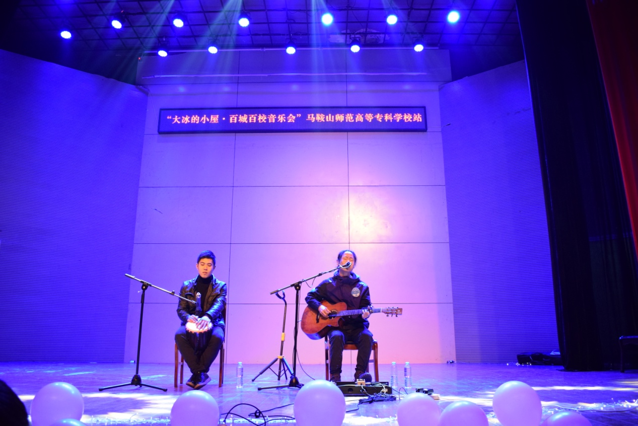 本网讯 青春迎校庆,筑梦马师专。11月29日晚,“大冰的小屋·百城百校音乐会”马鞍山师范高等专科学校站在学校音乐厅举行。此次百城百校音乐会作为纪念建校六十周年系列活动之一,由大冰的小屋主办,马鞍山师专旅游与外语系团总支学生会承办。