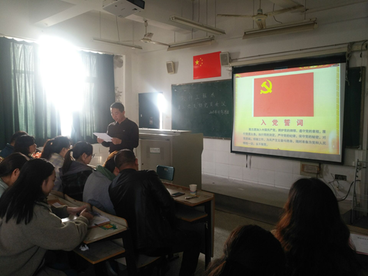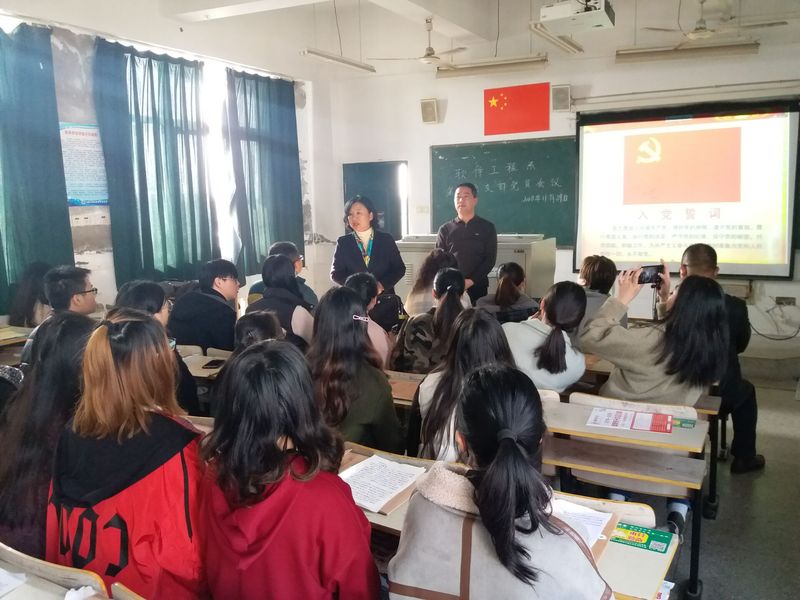 本网讯 11月29日下午,软件工程系党总支第二党支部在博学楼F601教室召开了支部党员发展大会暨新党员入党宣誓仪式。本次会议由第二党支部书记胡军老师主持,支部全体党员参加了本次会议。系党总支副书记王莉娟以普通党员身份参加了会议。