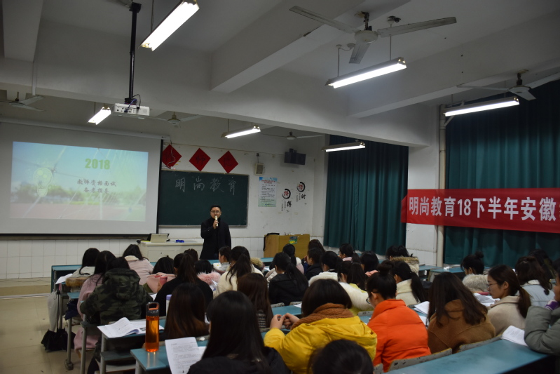 据悉,担任此次讲座的主讲是安徽明尚教育咨询有限公司的讲师徐艳,该公司每年都会在师范院校举行公益讲座,以便师范生清楚教师资格证的考试流程,能成功地拿下教师资格证。