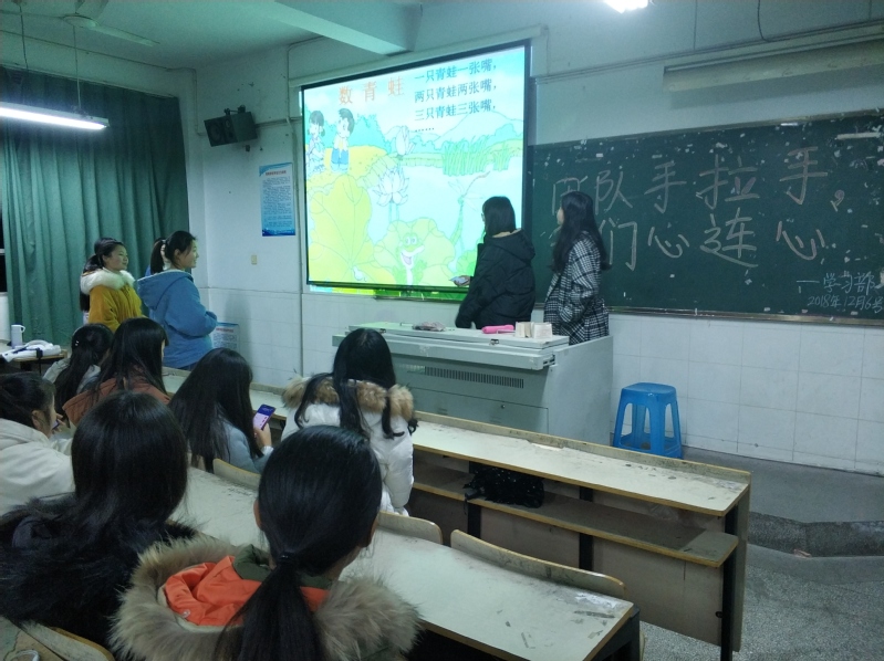 学习部成员们主动积极的为大家讲解游戏规则,亲自示范演示,做到每位选手都能理解比赛规则。这次活动主要以做游戏为主,通过群众喜闻乐见、易于接受的各种形式,教育和引导广大学生建立彼此之间的信任,团结友爱。首先,每班派出一名选手参加第一轮数青蛙比赛,观众都聚精会神的听着,生怕错过每一个细节;第二轮蒙眼画脸大比拼,这个游戏主要靠三个选手的配合能力和彼此之间的信任;第三轮循环相克令是一个非常有挑战性的游戏,不仅考验选手的灵活性还考验她们的记忆力。最后一个游戏萝卜蹲将活动推向了高潮,观众都热情高涨,积极参与,散发出青春的活力与激情。这次活动在欢乐中悄悄落幕。