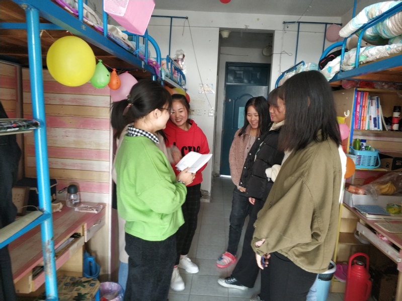本网讯 进入12月,气温骤降,虽然天气渐趋寒冷,但是冷却不了沟通交流的热情。近日,食品工程系的学生党员(入党积极分子、学生干部)们分别进入各自负责的寝室,以“走访宿舍,温暖大家”为主题与新生们进行沟通交流,以便给同学们营造一个更好的学习和生活环境。