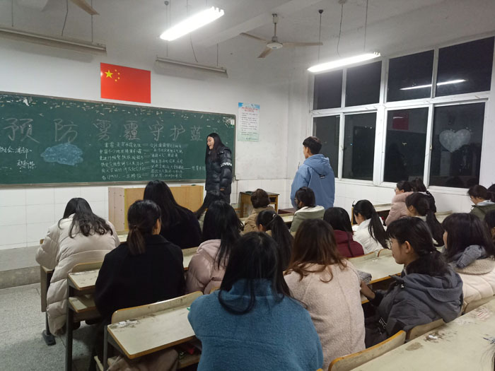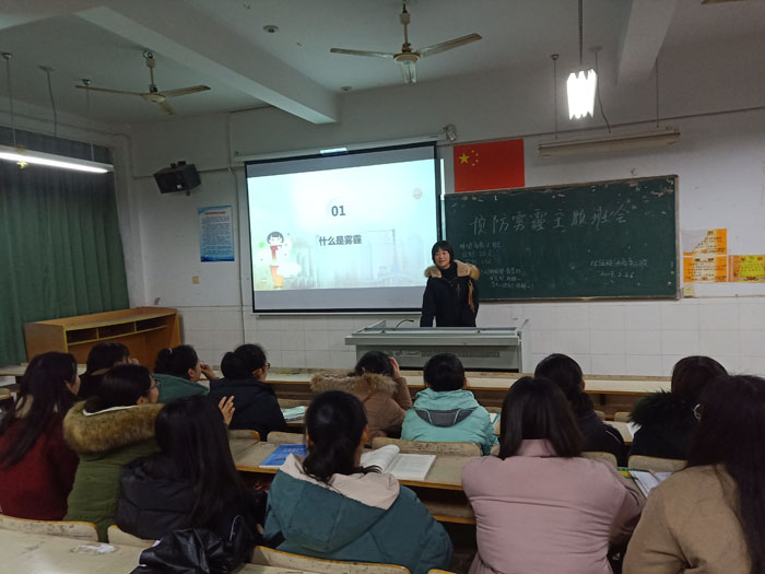 晚7时,该活动在该系部2018级各班晚自习室拉开帷幕。“‘雾霾’,已经成为我们生活中挥之不去的一道‘风景’了,不管我们是否愿意,它就在我们身边,可是,我们真的了解它吗?”走进该系部2018级移动商务(2)班,该班级生活委员黄云云正在细心的向同学们介绍“雾霾,顾名思义就是雾和霾。”随后她逐一介绍了“雾霾的现状”、“雾霾的成因”、“雾霾所带来的危害”等,她详细的介绍,让同学们更加了解关于雾霾的含义及危害。