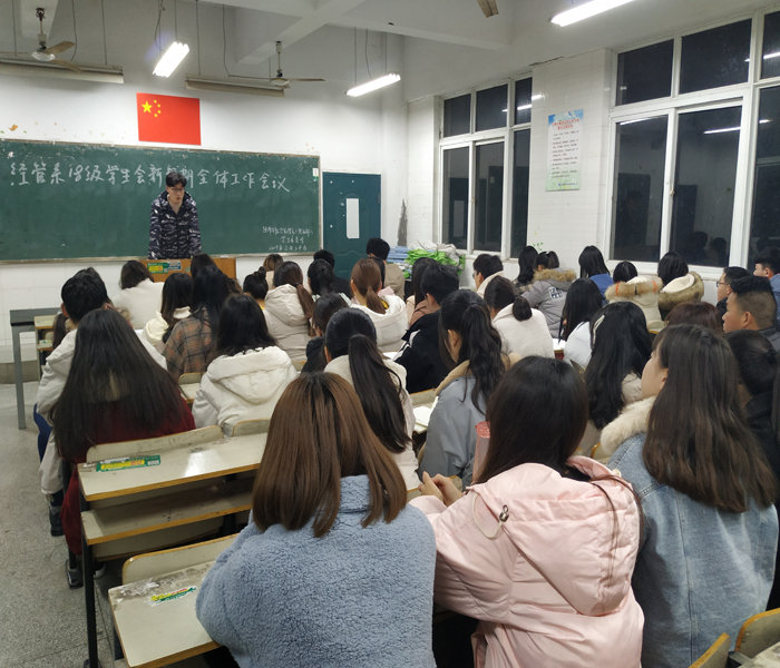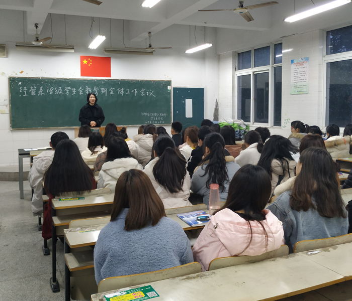 本网讯 为保证学生会工作的质量,提高工作效率,形成良好的团体意识,更好地做好系部学生工作。2月28日,经济与社会管理系(思政部)团总支于精业楼D101召开全体学生会工作会议。本次会议由学生会主席卢松飞主持、各部门部长和2018级学生会各部门干事参加。