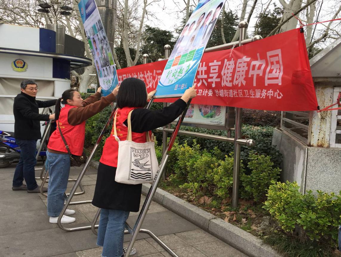 上午8点整,志愿者们在三号门集合前往花山区湖滨广场。到达之后,负责人便分配好任务。悬挂横幅,整理义诊桌子,布置活动现场,制作宣传展板。