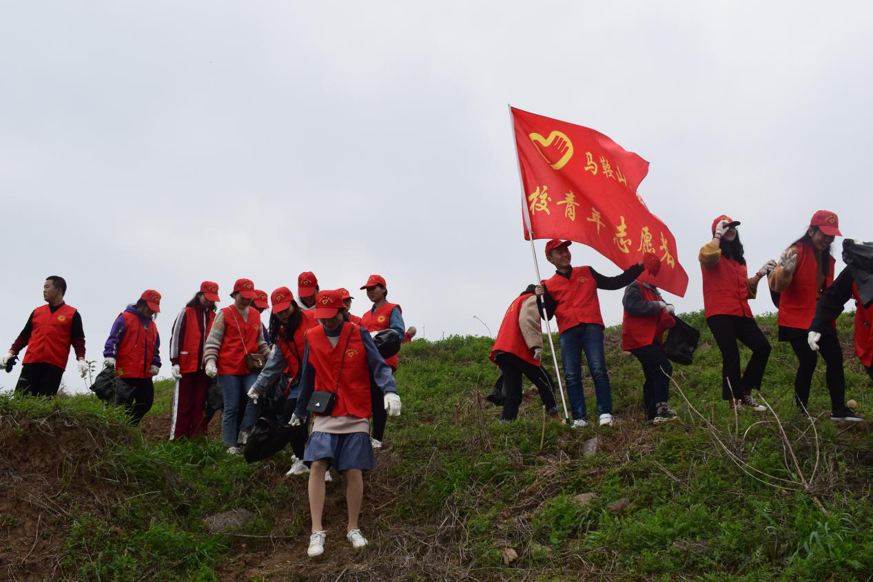 江风习习,鲜红的马鞍山师专青年志愿者旗帜迎风招展,他们身穿志愿服务“红马甲”,手提环保清洁袋,将江岸两边草丛里和沙滩上各种颜色的塑料袋、塑料桶、废旧衣物及烟头等生活垃圾分类收集处理。三人一组、五人一群,分工协作、默契配合,在草丛间、沙堆里边走边找,全情投入,形成长江边的一道靓丽风景。
