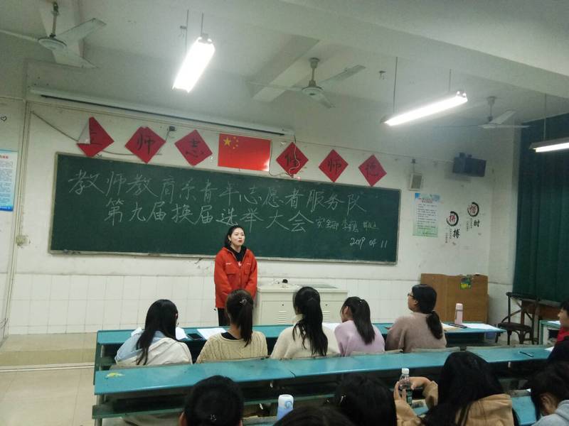 本网讯 4月11日,教师教育系(基础部)于修德楼106开展了第九届青年志愿者服务队换届选举大会,该系部辅导员、指导老师冯金燕出席会议,全体第八届志愿者服务队成员参加会议。会议由副队长周燕主持。