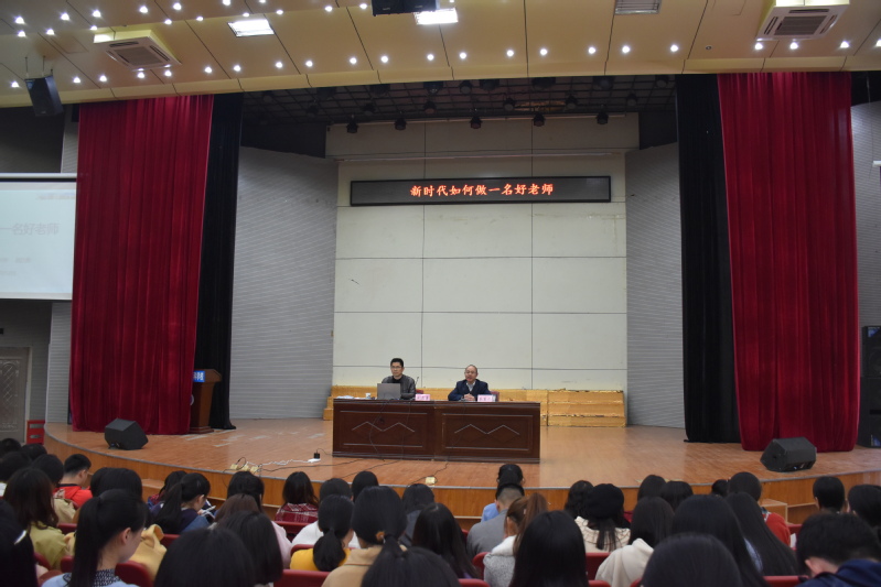 整场讲座从宏观和微观两个层面就“新时代如何做一名好老师”进行了详细阐述。讲座伊始,赵昌勇表示:“党的十九大召开是我们社会步入新时代的标志。”随后,他结合“十九大报告”“中共中央国务院关于全面深化新时代教师队伍建设改革的意见”“2018年全国教育工作大会”相关会议与文件精神解读,告诫与会同学:教师是“立教之本,兴教之源”,十九大报告明确提出要把教育摆在优先发展的战略地位。“作为新时代的老师,我们应该自觉承担历史使命,树立远大理想,坚持立德树人,脚踏实地,争做‘四有’好老师。”重视教育就是重视未来,重视教育才能赢得未来。根据与会同学的实际情况,赵校长从“新时代中小学教师职业行为十项准则”解析出发,详细讲述了新教师教学常规“五环节”和一名“好老师”课堂管理中应该体现的经典细节。诸如:作为老师最基本的是要用心记住每一位学生的名字,当你能够记住孩子们的名字,其实他们的内心会很开心,也会敬畏你;要让学生愿意听自己的课,那么课堂上应该是充满激情与乐趣的;老师要用平和的心态、包容的心与学生相处,要学会倾听,多给机会;老师要富有慧心、恒心和耐心……赵校长结合个人工作经验与同学们畅谈了许多。这些具有实践性的意见与建议,对同学即将开展的实习工作具有较好的借鉴意义,也势必对他们后期的教师职业生涯产生积极而长远的影响。