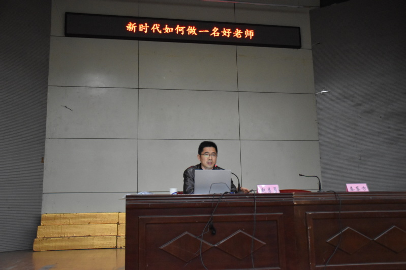 本网讯 为更好地开展2017级三年制和2015级五年制师范生中期实习工作,助力学生做好角色定位,树立正确的职业观念,更好更快地进入实习状态,教师教育系(基础部)于4月12日下午2:00在校音乐厅组织开展了“新时代如何做一名好老师”专题讲座,活动特邀马鞍山市山南小学校长赵昌勇担任主讲,该系部主任秦东方主持,参加本次中期实习的全体同学聆听了讲座。
