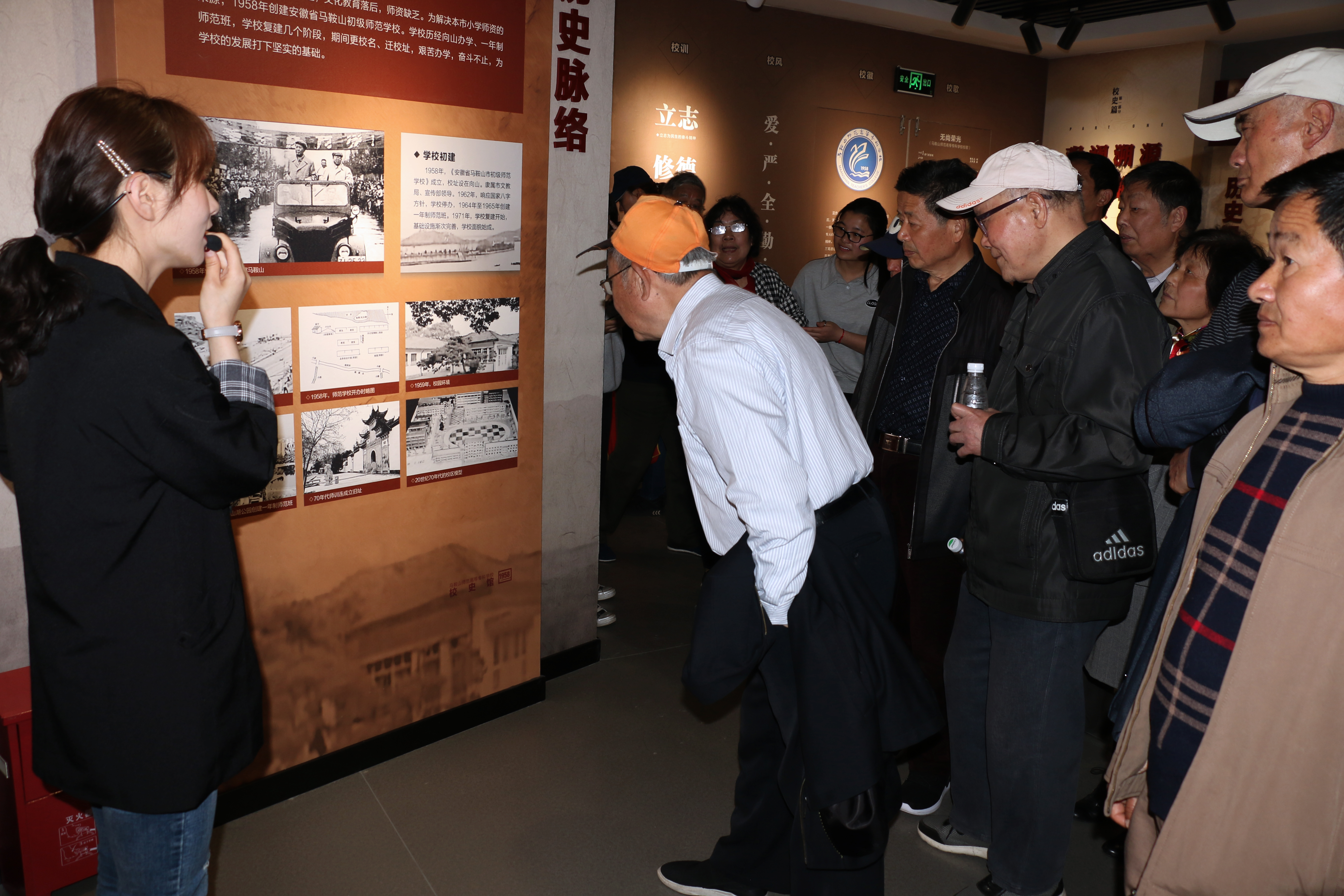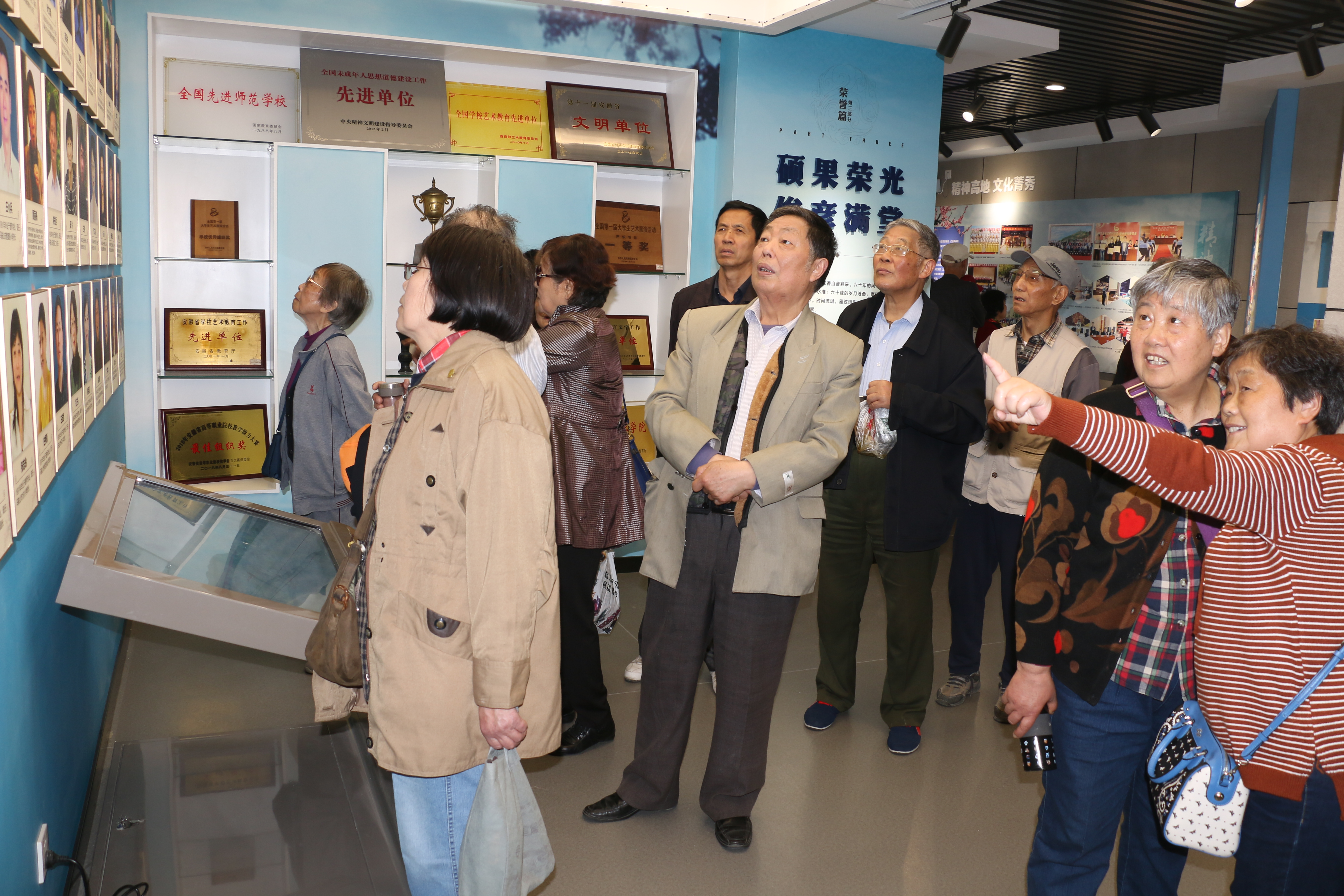比赛结束后,根据工作安排,校工会组织带领老同志们参观了校史馆。进入校史馆,跟随着讲解员的介绍,退休教职工们不时驻足流连,仔细观看图文并茂的校史展品。他们时而指点熟悉的历史画面,时而评说过往骄人的成绩,时而谈说起照片墙上的优秀校友。