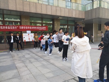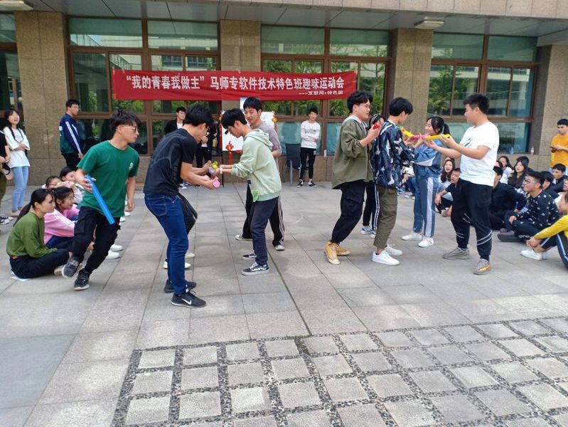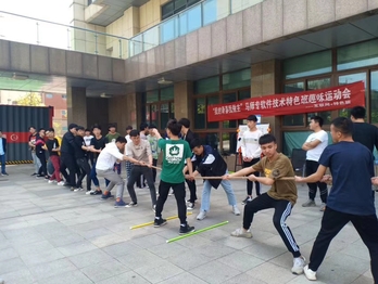 本网讯 春末夏初,阳光明媚。为了增强学生体质及更好地培养学生的团队凝聚力、集体荣誉感及竞争意识,4月18日,软件工程系与美和易思校企共建专业班级举行了一场题为“我的青春我做主”的趣味运动会。