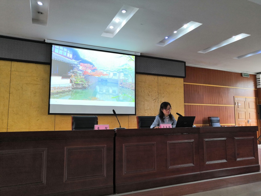 于春莉老师认为,“天人合一”观贯穿了中国文化,表现在方方面面。她选取了中国的建筑、国画、器皿、民俗及古代文学这五个方面加以展示和阐述。通过她的阐述,同学们了解到,中国建筑中的天圆地方、框景与漏影、园林中的山水相依等设计,国画中鸟兽回眸交流的场景,器皿中颇具代表性的三才杯,过年时鞭炮与盘古开天地传说的关系,还有古代的诗词文等都体现了中华民族的“天人合一”观。