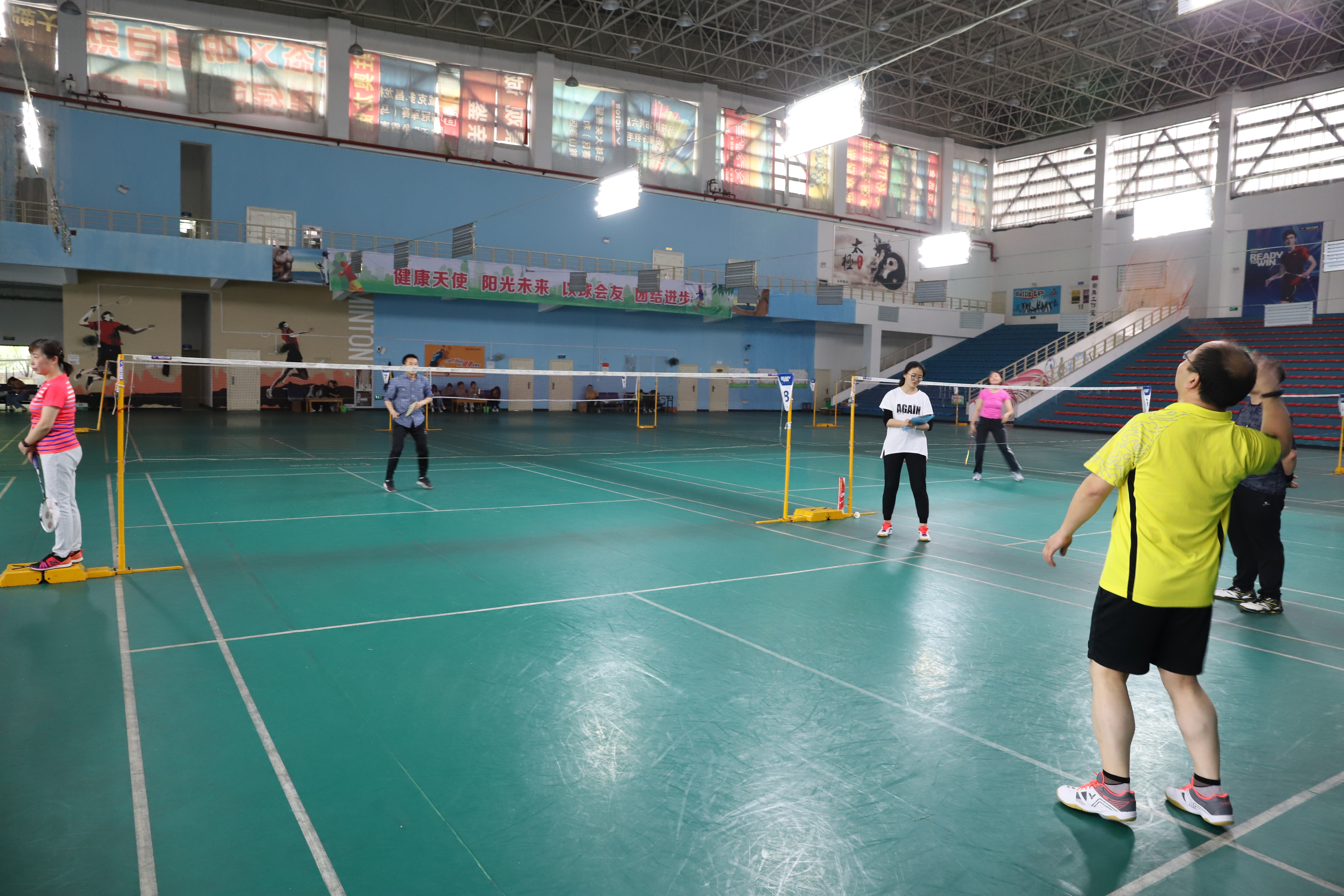 本网讯 4月26日,由校工会主办,教职工羽毛球协会承办的2019年第十一届教职工羽毛球比赛在校体育馆圆满落下帷幕。在为期两天的比赛中,各位选手本着“友谊第一,比赛第二”和“文明参赛”的原则,尊重并服从裁判,齐心协力,顽强拼搏,赛出了水平,赛出了风格,共同营造了浓郁和谐的赛场氛围。